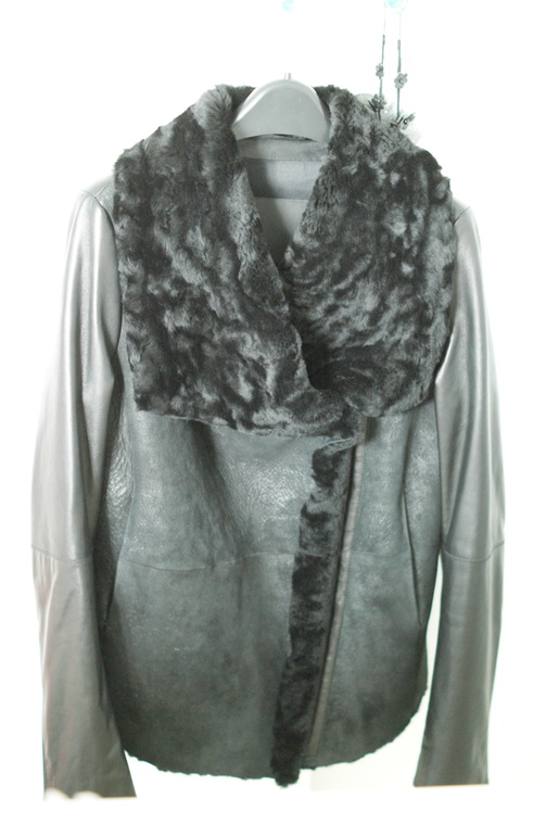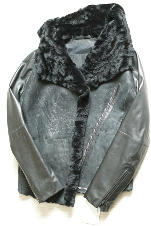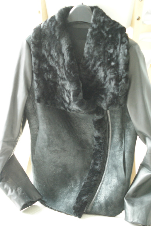Спереди дубленая кожа с мехом, рукава и спинка просто кожа. На рукавах молнии, регулируется ширина рукава внизу.