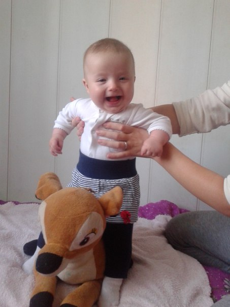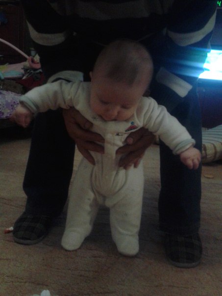 а это как бы мы стоим ( естественно , мы ее не поставили на пол , а просто так придерживаем над полом , ничего такого не подумайте, что я ребенка поставила на пол)