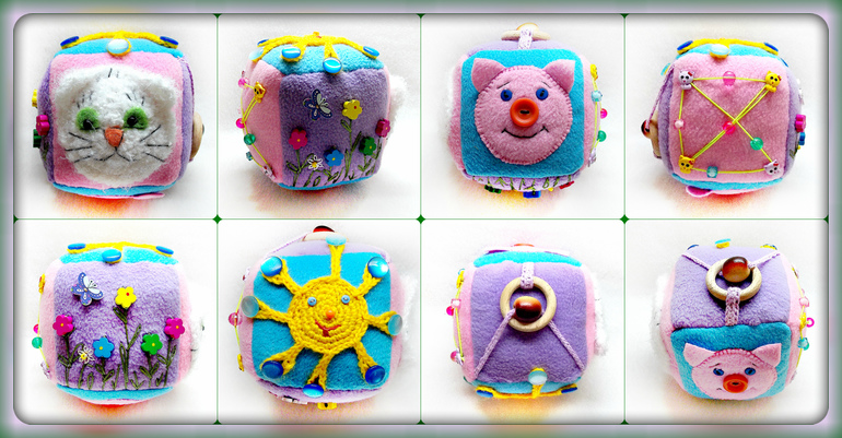 Сшила новые развивашки, одна из них для совсем маленькой девочки, поэтому на ней только вышитые элементы и никаких бусин-пуговичек.