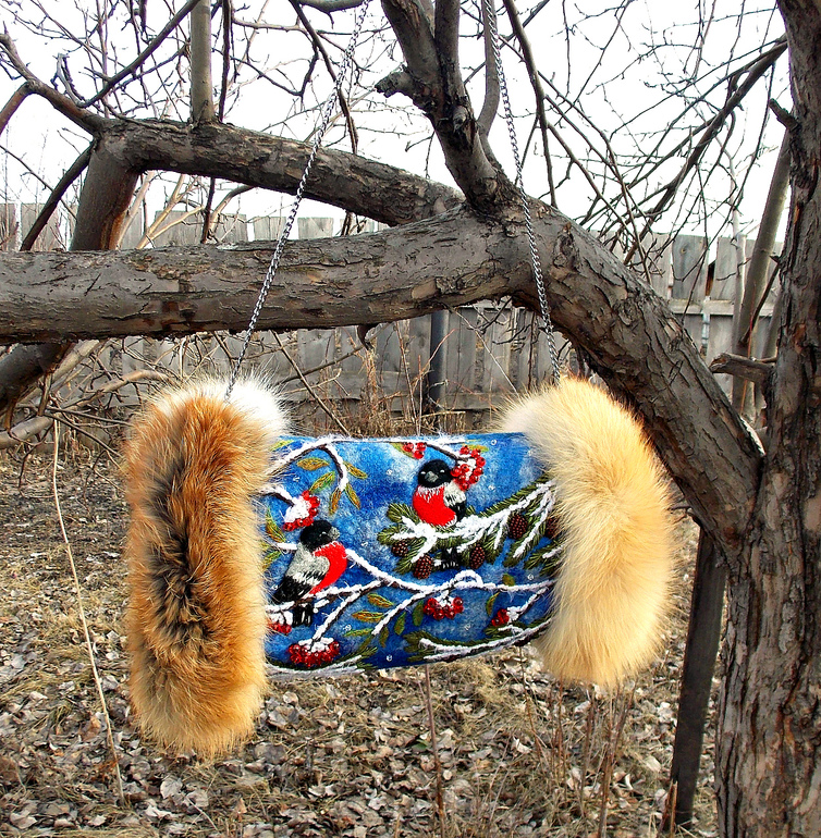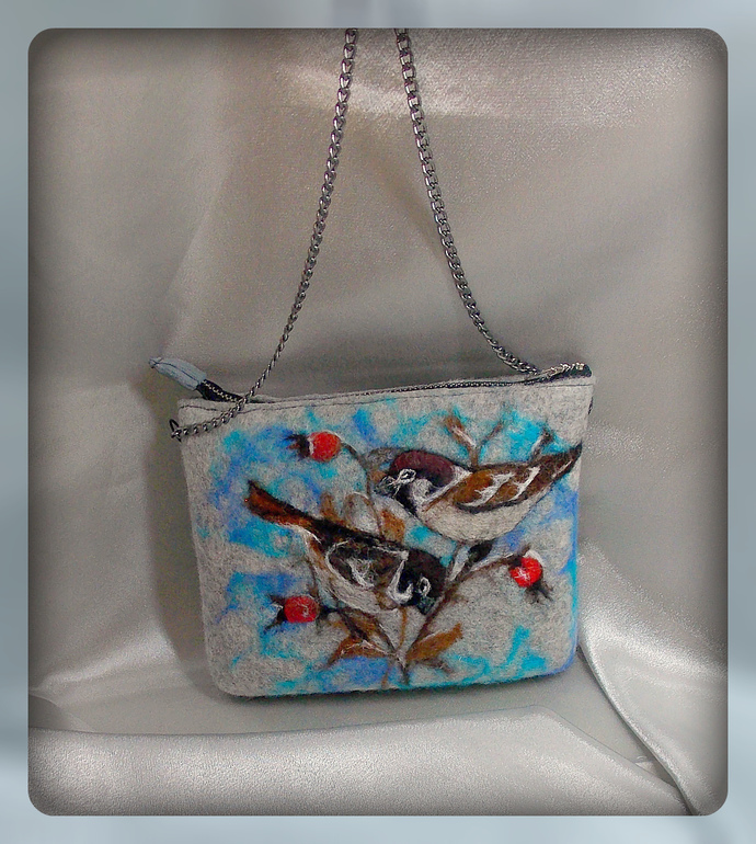 Вот такие птички сегодня прилетели на мою сумочку) Сумочка маленькая) Такая, чтобы только телефон и паспорт положить) С подкладом) С кармашками))