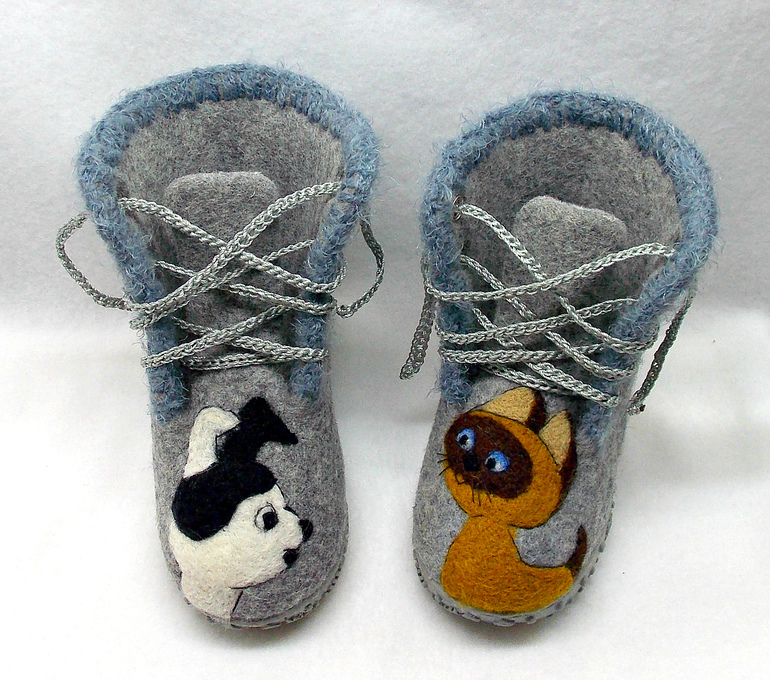 Ура, мой отпуск закончился) И я снова готова творить) Тапули с котиком (сухое и мокрое валяние)