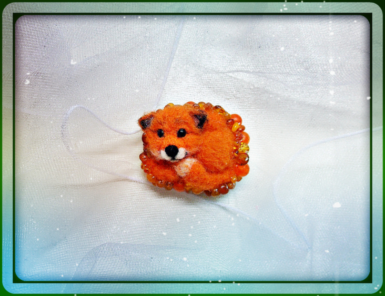 Сваляла я в дополнение к комплекту с лисками вот такую брошь) Долго лежали у меня рассыпавшиеся янтарные бусы и вот дождались своего часа))) (3 фото)
