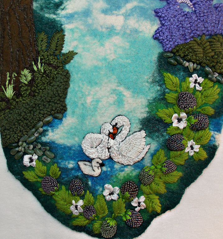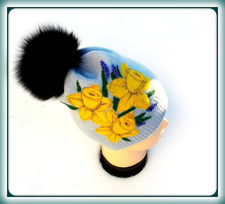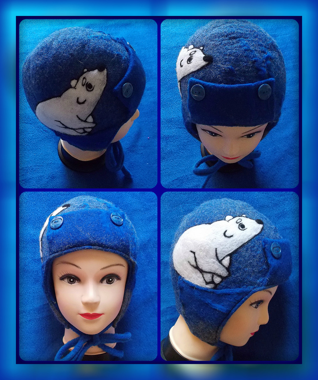 Вот, что у меня вышло) Рисунок - сухое валяние и вышивка шелковыми ниточками. Шапочка - машинная вязка.