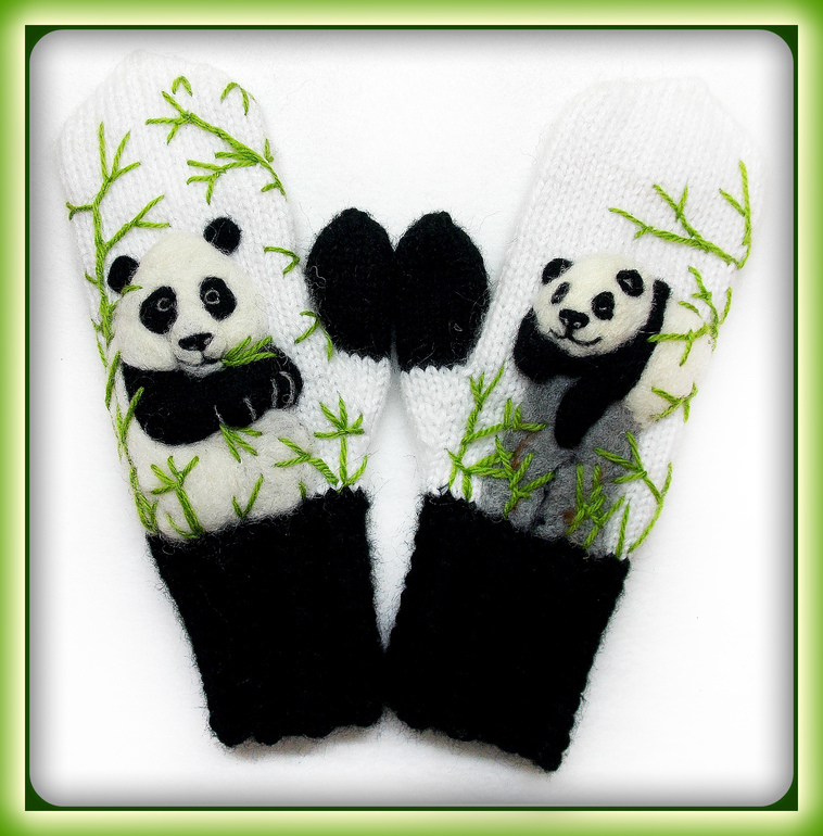 Случайно связала не полосатые, а черные манжеты к рукавичкам. И когда держала их в руках, то поняла, что просятся на них панды)) И вот))) Получились вот такие милахи)) и брошь к ним в дополнение) (4фото) Девочки-модераторы, не хватает категории "смешанная техника"))) Не знаю к какой больше подходит мой пост...