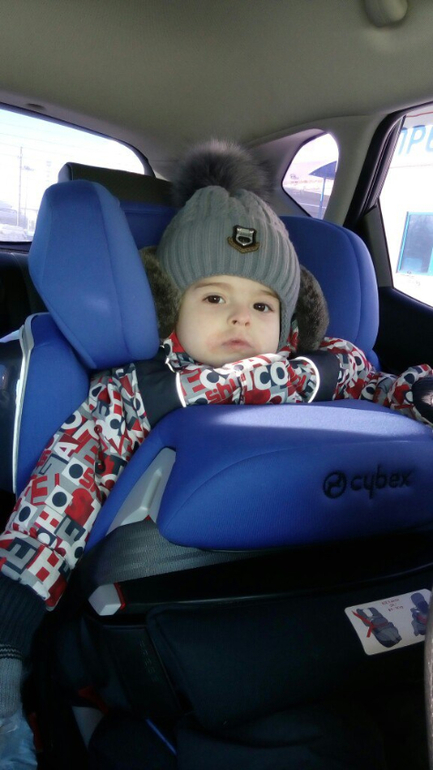 Почти уснул. Ездить на машине очень любит. На фото заметно, что вокруг губ покраснение - это Лешина плохая привычка - облизывать губы на морозе :(