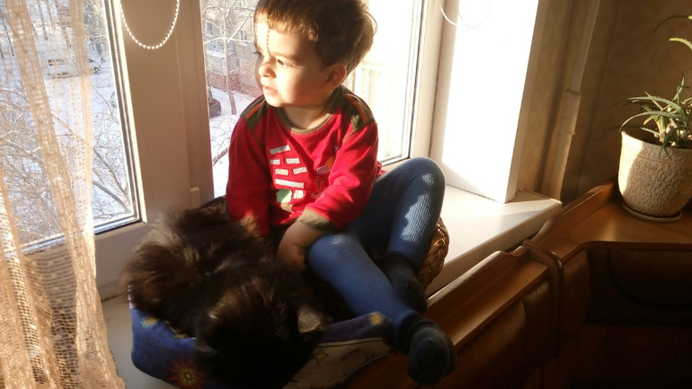Наблюдательный пункт на окне. Корзинке не повезло. 13 лет она жила и горя не знала, а теперь.. А вот коту повезло, в этот раз с ним рядом просто сели, а могли бы сесть или лечь прямо на него. А сынок просто папу с работы ждет... Часто окно проверяет.