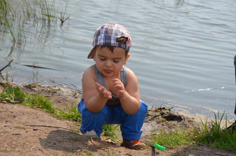 Это старая сентябрьская фотка, недавно на нее наткнулась. Ездили на рыбалку. Посмотришь, такой большой мужичок сидит :)