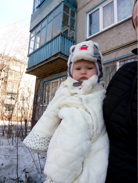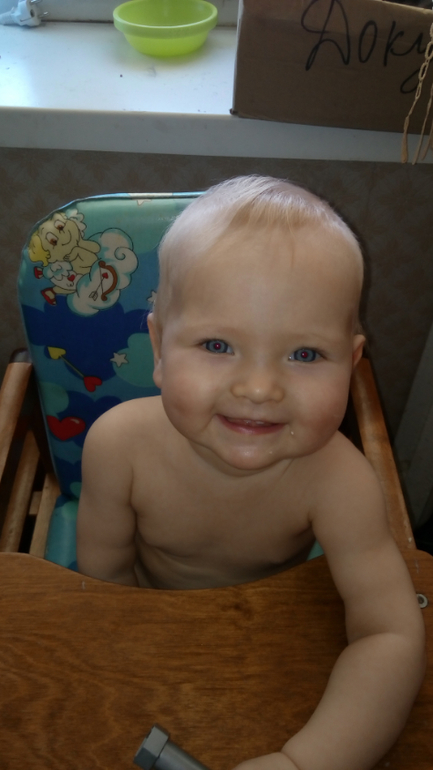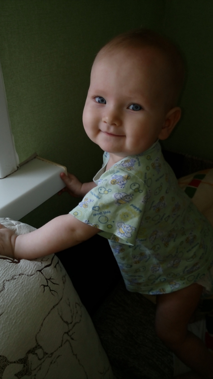 Волосы потихоньку отрастают и темнеют, уже видно, что она не блондинка, а малышка со светло-русыми волосами. Глаза голубые, ямочки на щечках сохранились.. она с ними можно сказать родилась. Малышка улыбалась во сне очень часто, я всегда наблюдала за этими ямочками на щечках. Они чудесны, а улыбка .. ну, что я говорю, все дети улыбаются искренне, улыбаются не только губками, но и глазками. Взрослые часто теряют эту особенность.