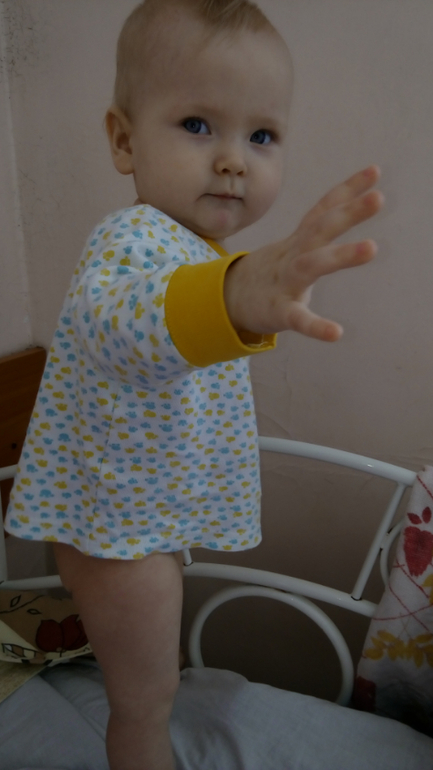 Нравится прыгать (еще бы.. такой пример перед глазами). Машет привет и пока. Нравится складывать предметы. Пытается сама ездить на толокаре. Вслед за братом играет машинками и говорит «бррррр». Если я на нее ругаюсь и грожу ей пальчиком - грозит мне в ответ целой ручкой и что-то мычит при этом.