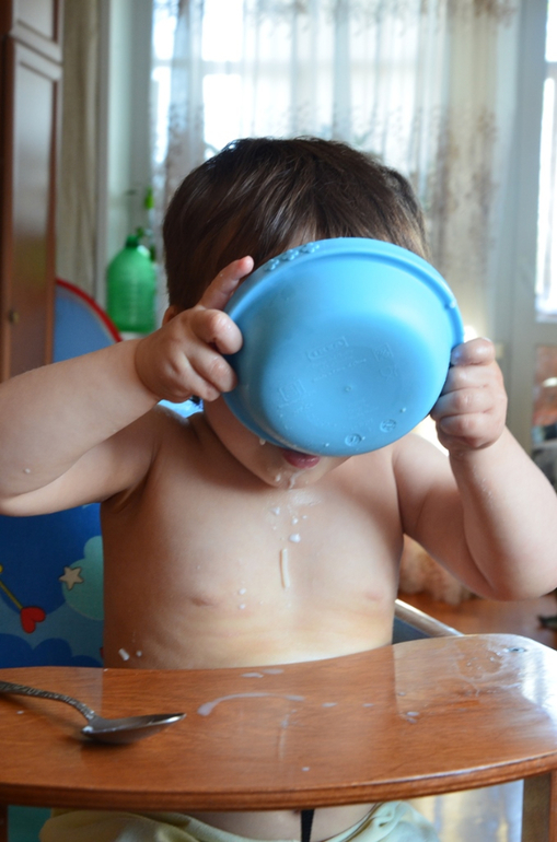 Запарило меня то, что он пачкается за столом (и себя, и все вокруг). Последней каплей было то, что он целенаправленно скидывал с ложки кашу на пол. Мама психанула. Теперь сын как покушает идет сам за тряпкой в ванну и протирает стол и полы, где намусорил. Ттт, но свинячества стало заметно меньше :) Что ж я раньше-то сама убирала...