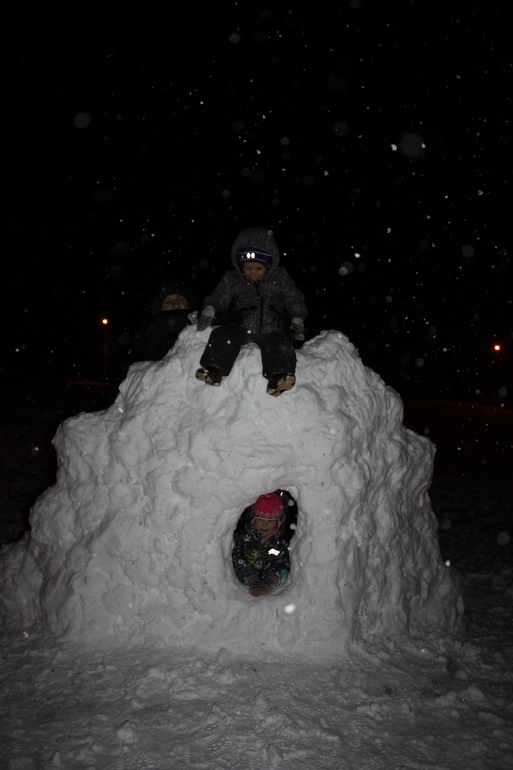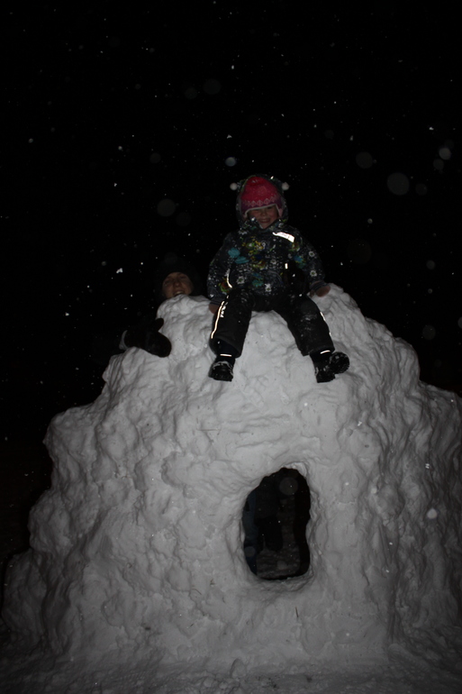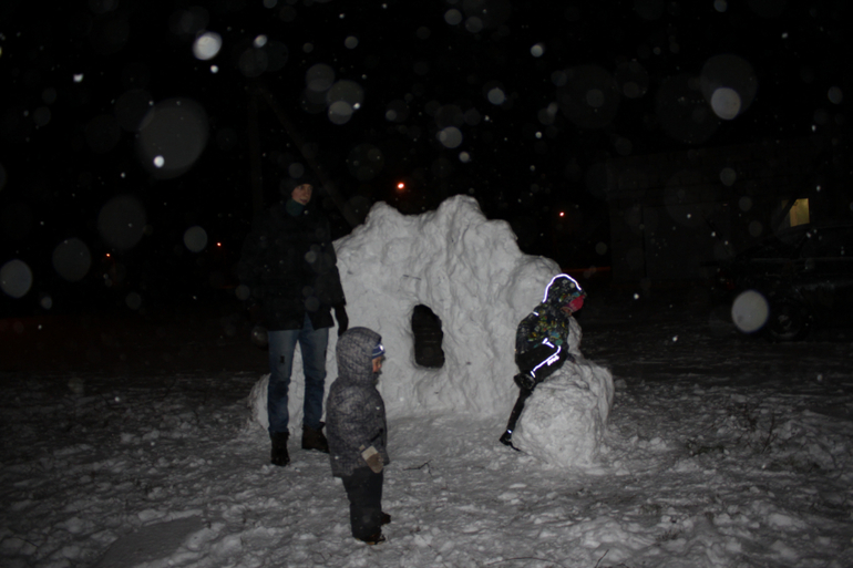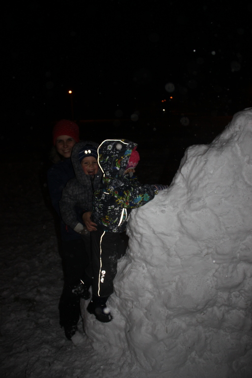 Построили в ночи крепость. Пашок так завелся на стройке, что еле домой унесли, с криками "катать, катать". Люба тоже очень зантересованна была данным действом:) Жалко, но сегодня ночью дул такой ветрище-что теперь на месте нашей крепости руины.