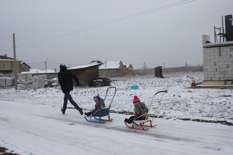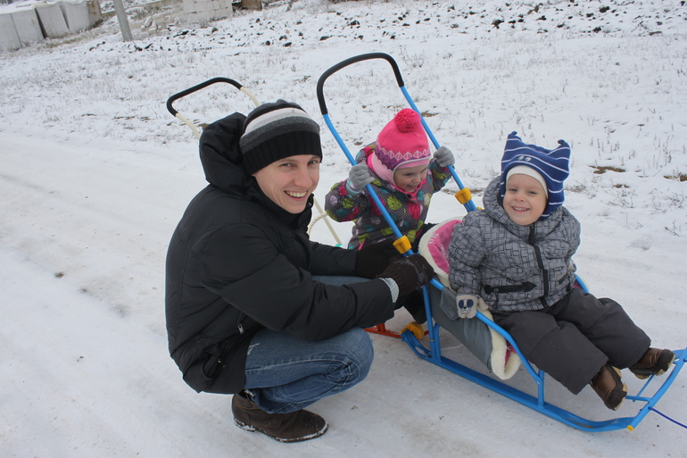 Наконец то, целых два дня мы провели дома-безвылазно. Накатались на санках.