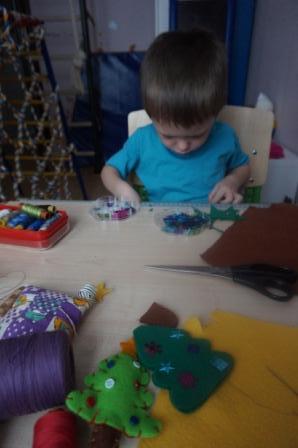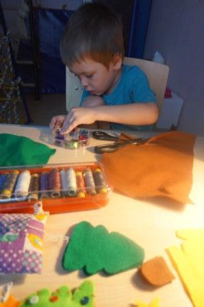 вот и сегодня я надеялась, что работать буду вместе с малышом, так как он видел заготовку из магазина, просил разрезать фетр и всячески уже несколько дней стимулировал меня на творчество.