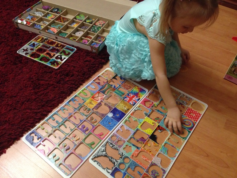 Она этой азбукой играла почти половину дня. Просила называть меня буквы, подбирать к этим буквам слова, потом сама искала нужную ячейку. А перед сном, когда укладывались, чуть не добила меня своим "а на Л, а на К, а на М, а на Н, а еще на Л, а на П?" И так по кругу раз двести)) И это в 12 ночи, когда мой мозг был уже практически в отключке))
