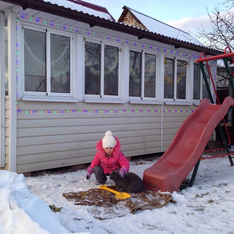 Ой, милая, и не говори, как все-таки на просторе здорово! Гуляй где хочешь! Погодка только ооочень холодная была, долго не погуляешь... Мы и хоровод вокруг елочки водили, и на всех санках/ледянках/снегокатах перекатались...