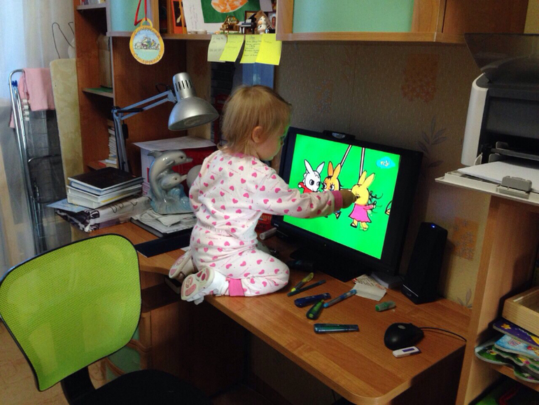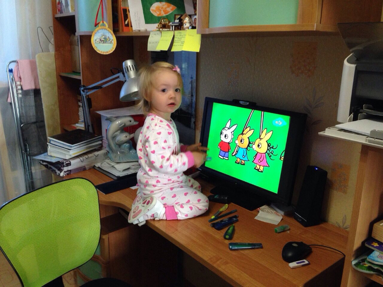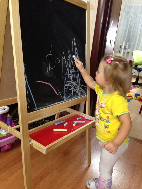 Научилась залезать к Ленуське на стол. Сначала на стул, а потом очень эффектно на стол. Почиркала ей в тетради, изрисовала монитор, разбила светильник. Каждый день покоряет новые и новые вершины. Совсем ничего не боится!..
