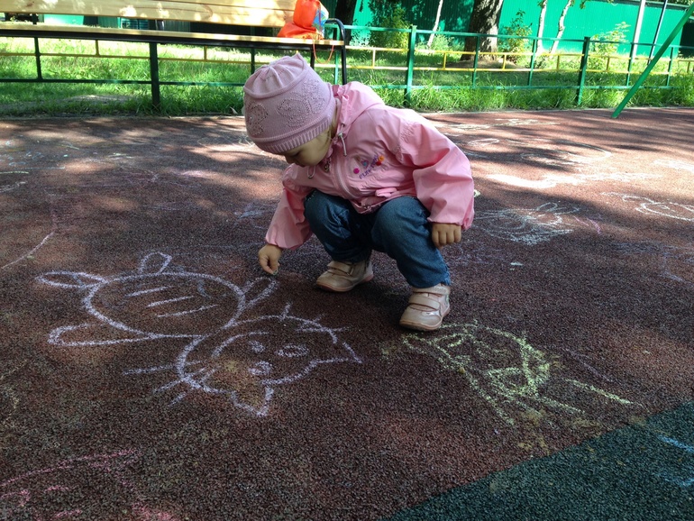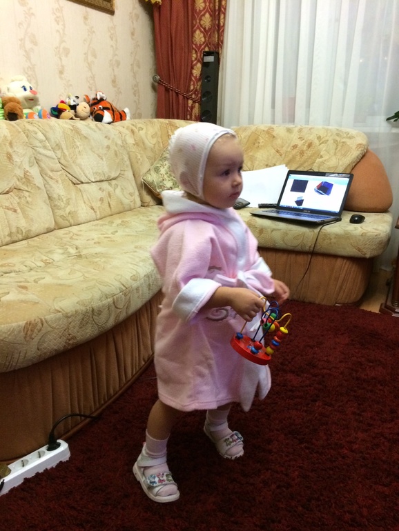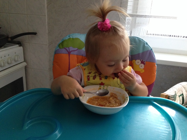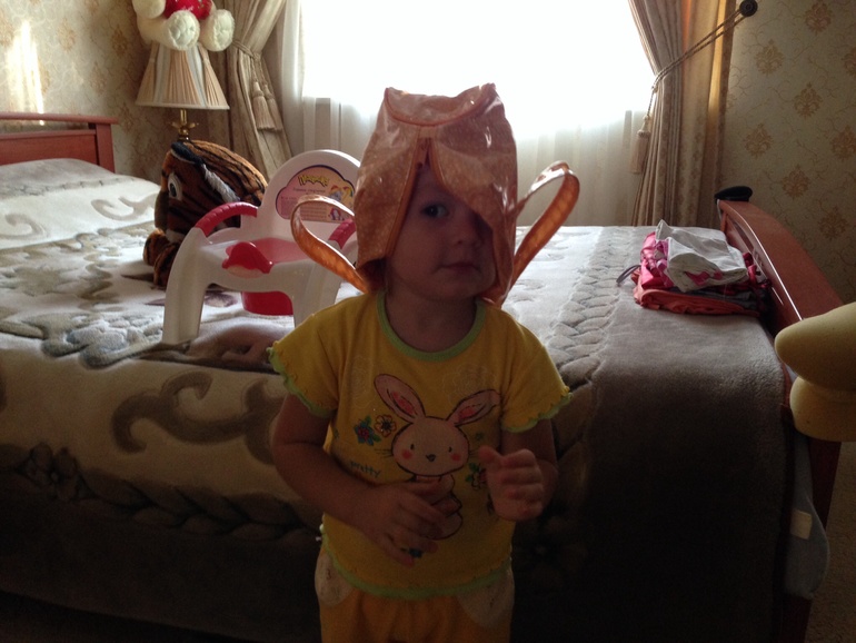 Дашулька у нас растет такой выдумщицей! Свекровь в шутку говорит, что она всех троих переплюнет в этом деле (имеются в виду остальные внуки). Например, Дашенька очень любит выливать содержимое своей бутылочки или поильника на пол, а потом копошиться в этой воде. Но поскольку мы этого делать не разрешаем и в связи с этим запрещаем выносить бутылочку из кухни, она стала хитрить.