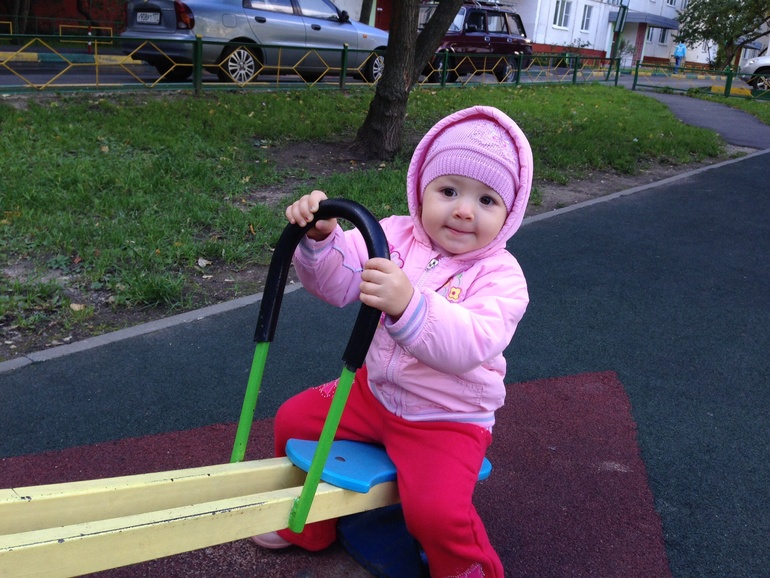 Научилась открывать и закрывать двери. Но закрывает не спокойно, а с размаху захлопывает. У меня от этого звука каждый раз душа в пятки уходит. Каждый раз боюсь, как бы она себе пальчики не перебила. А Дашуля ждет, когда к ней придут и так заливисто хохочет, когда я открываю дверь.