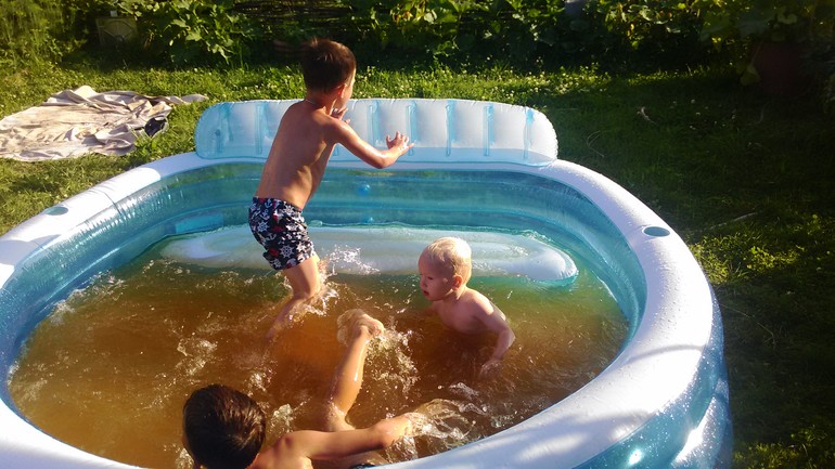 Дождались тёплых деньков и вдоволь накупались на даче в бассейне вместе с племянниками..