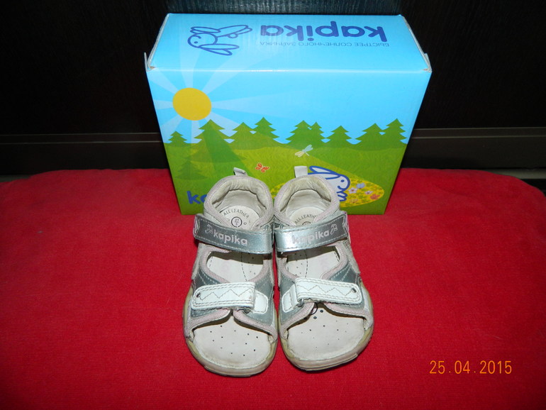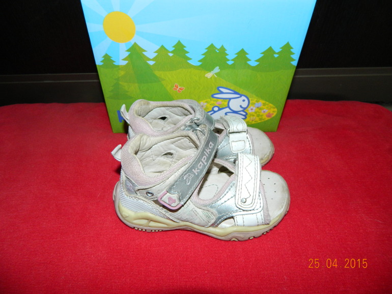 Сандалии "Капика", кожа на коже, 22 р-р, по стельке 14 см, на двух липучках, подойдут на любую полноту ногу, есть супинатор. Цвет белый с серебряным, очень красивые. В отличном состоянии.