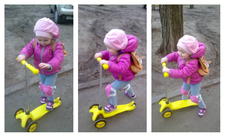 СофияНаконец София дождалась, мы купили ей самокат. Corol трехколесный (два впереди, одно сзади), отзывов я на него в и-нете не нашла, поэтому была покупка "в слепую" можно сказать. не знаю,как он себя покажет, но вроде крепкий, София на нем поехала легко, ручки удобные, поворачивать наклоном тела (по типу Мини Микро), не проседает, на кочках сильно не прыгает. В общем, пока все хорошо. А главное дочка в восторге!!