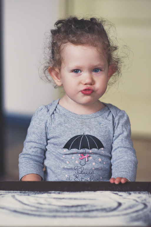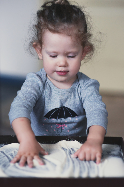 Я рисовала различные узоры, геометрические фигуры, просила Никушу за мной повторить. Сколько же радости ей принесло это занятие. Она с воодушевлением выводила маленьким пальчиком различные закорючки;) Осыпала манкой свое лицо, видимо, получая удовольствие от тактильных ощущений, пересыпала ее в различные емкости различными способами. После, моя помощница, бегала по комнате с маленьким ведерком и маленькой тряпочкой, помогая мне мыть пол ( манка, признаться, была везде, хотя не критично). Ника почти научилась выжимать тряпку, поэтому раскиданная манка не покрылась слоем воды. Думаю, будем чаще практиковать данный способ рисования;)