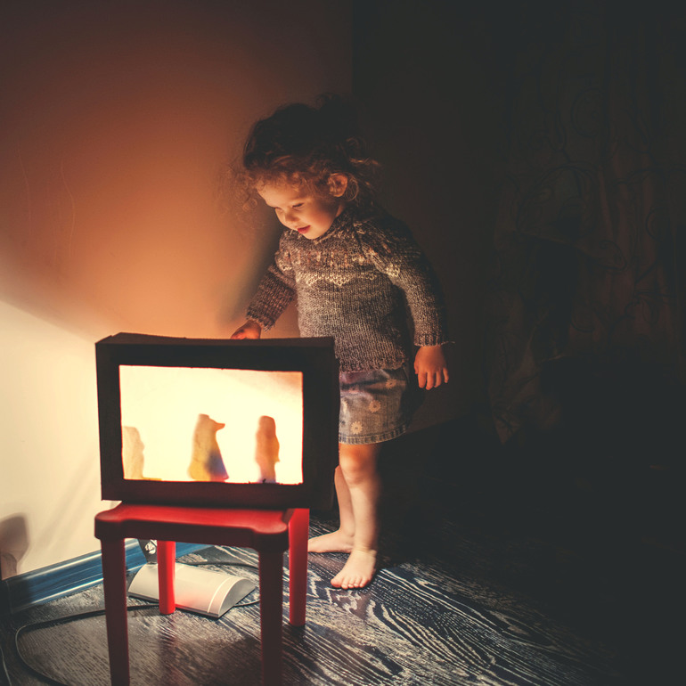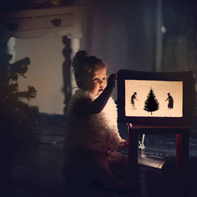 С Недавнего времени Никуша полюбила обыгрывать сказки, для нее это занятие стало более интересным, чем просто читать книги. Теперь у нас на полке красуется большая коробка с огромным количеством сказочных персонажей. Но мне хотелось сделать процесс оживления сказок более волшебным, создать особую атмосферу, так у нас в доме появился самодельный театр теней. Усилий для его создания 10 минут, а сколько радости он приносит ребенку;) Я использовала коробку из-под обуви, вырезала в ней прямоугольник и приклеила кусок кальки, всё... театр готов)
