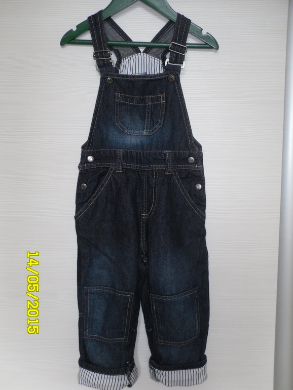 4. Стильный джинсовый комбинезон Lupilu размер 92,но можно носить до 98 смело за счет отворачивающихся манжетов и регулирующихся лямочек - 600 руб.