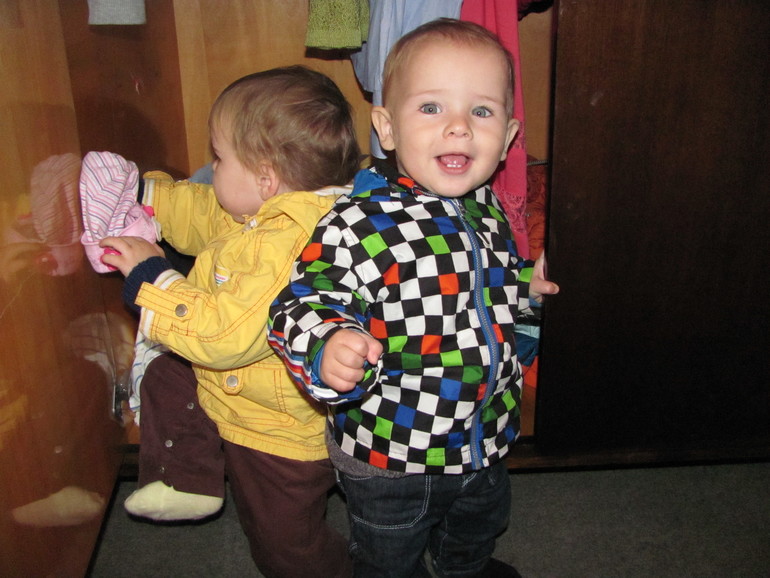 Играют сами и между собой, со мной и с Дашенькой, но все их игры втроем заканчиваются кучей-малой. Любят гонять мяч, бросают его, пинают, догоняют, загоняют под кровать/диван/стол и др. мебель и лезут доставать, при этом смеются и визжат. Заинтересовал конструктор, подолгу могут ковыряться с ним, а если сесть и собирать с ними, то полный восторг. Особый кайф - отобрать куклы старшей сестры и подраться за них. Да и вообще, любят забирать у друг друга что-либо. Соперничество. Яромир может легко отдать и отвлечься на что-то иное, а Лада будет вопить и привлекать всеобщее внимание к этой глобальной проблеме человечества.