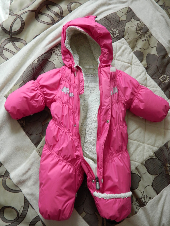 Зимний комбинезон, очень теплый! Есть отвороты на ручках и ножках, т.е дополнительная обувь и варежки не требуются. Размер 62. Цена 2500 руб