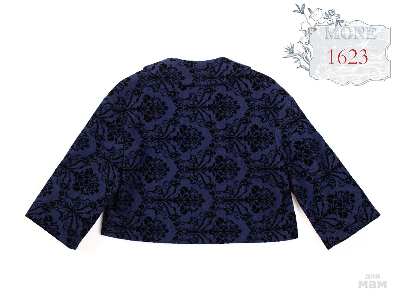 1624 жакет трикотаж, понтирома принт, рукав 3 четверти 122-152 синий, состав 50%вискоза 40%хлопок 10%лайкра цена 28,47+орг