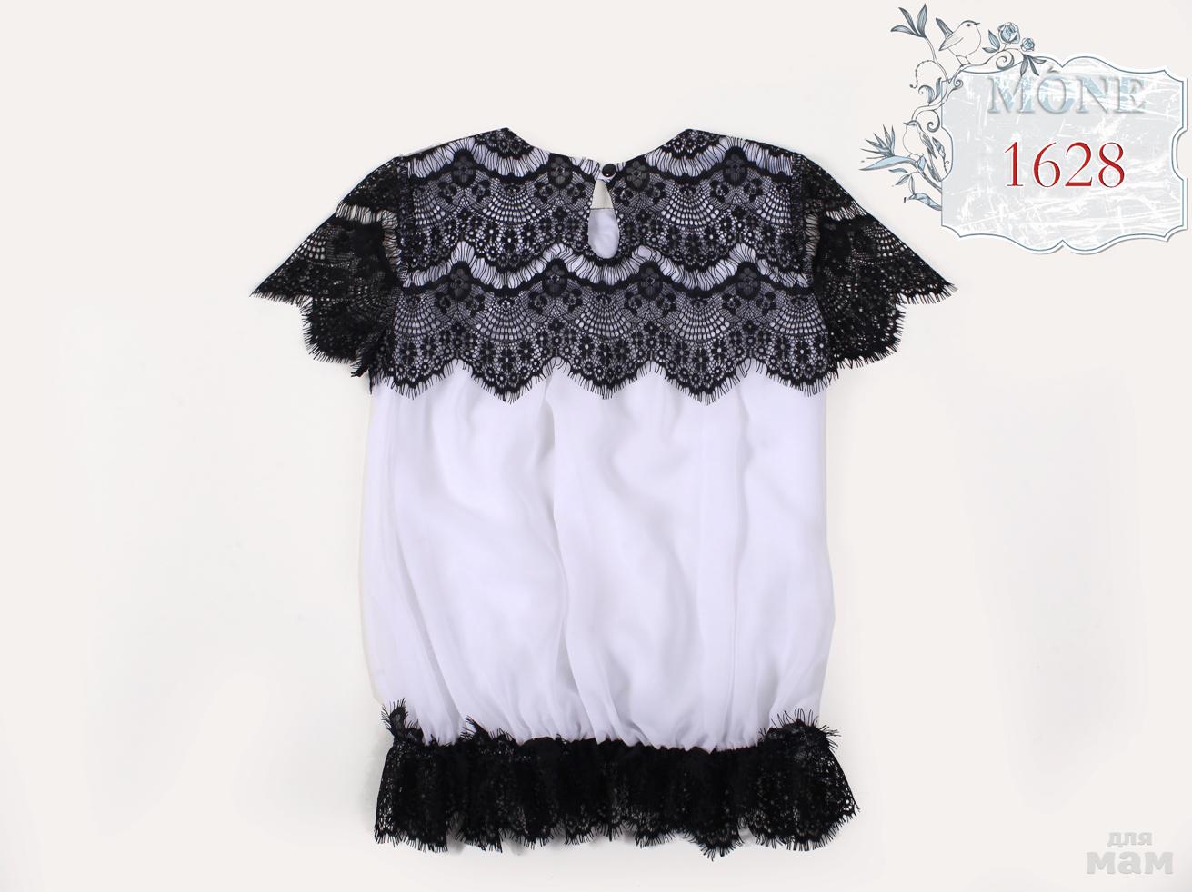 1628-1 блузка текстиль, шифон, французские кружева 122-152 молочный состав 50%полиэстер 50% хлопок, подклад 100%вискоза цена 20.31+орг