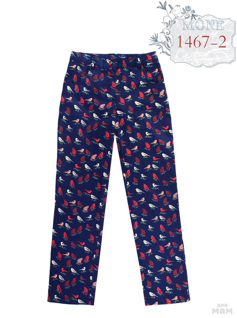1467-2 брюки текстиль, котон-стрейч, принт птички 122-152 птичка-синий, состав 5% лайкра 5% вискоза 90% хлопок цена 23,18+орг