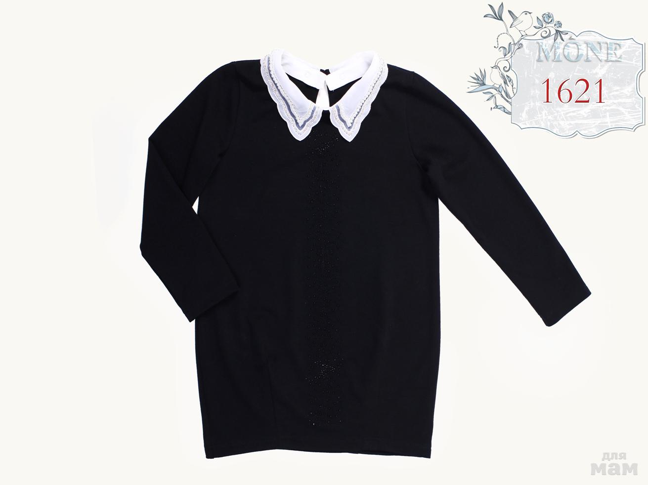 1621 платье трикотаж, съемный воротник, длинный рукав 122-152 черный, состав 50%вискоза 40%полиэстер 10%лайкра цена 31,27+орг