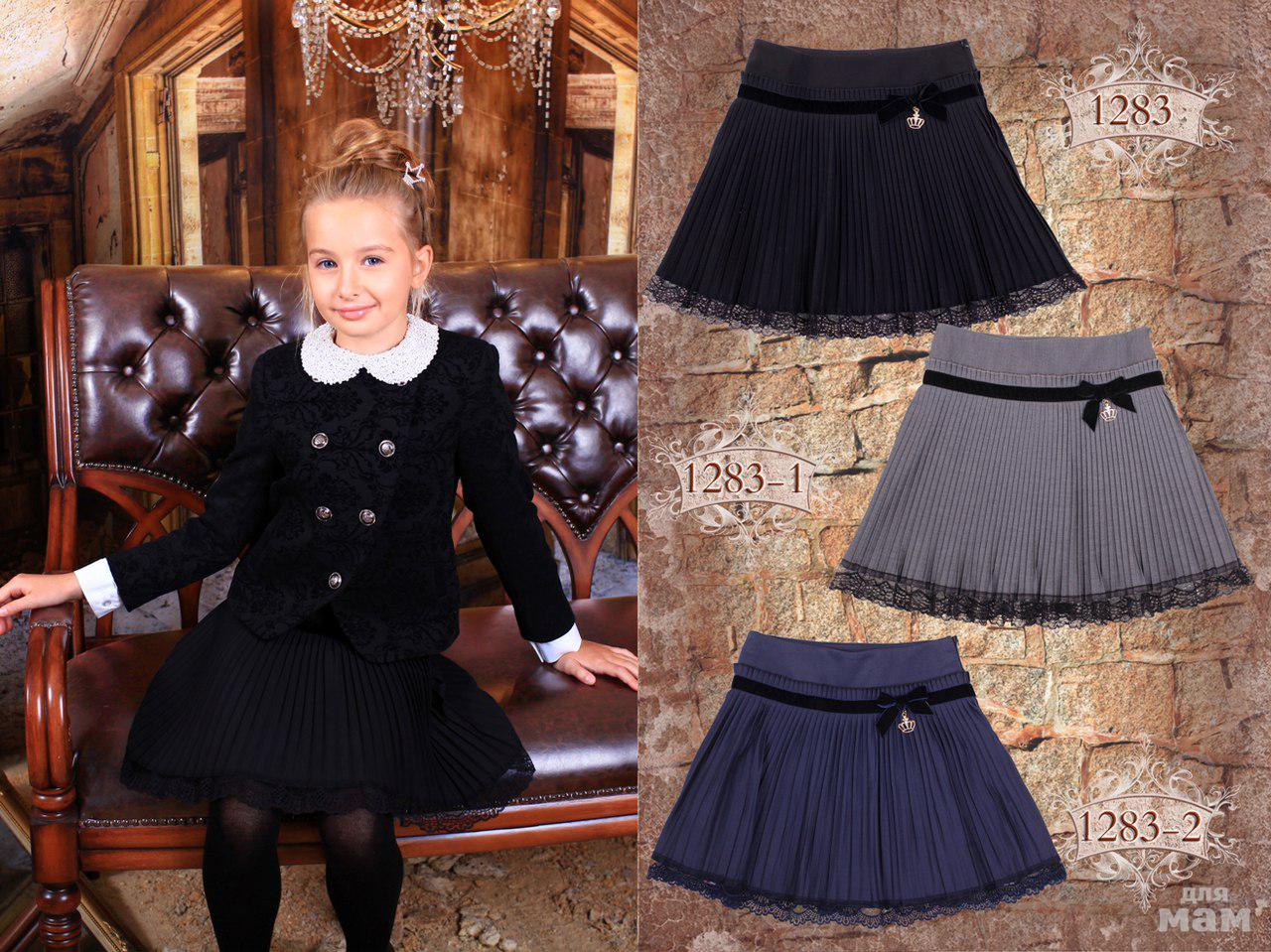 1283-1 юбка текстиль гофре, однотон, кружева 122-152 серый, состав 50%вискоза 40%хлопок 10%лайкра цена 27,69+орг