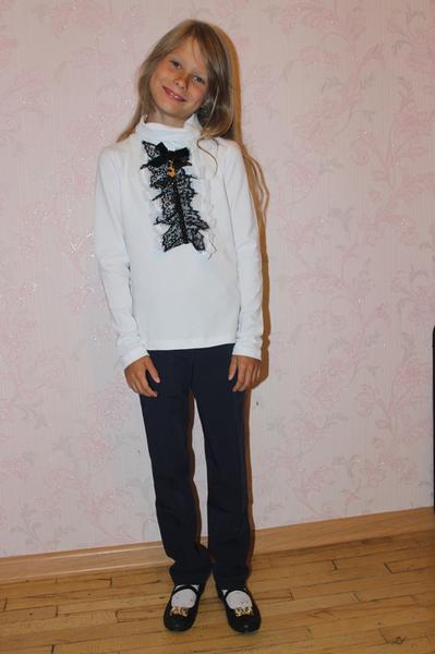 живое фото этой блузки в черном цвете ( на дочке р 140 при росте 130) большевата
