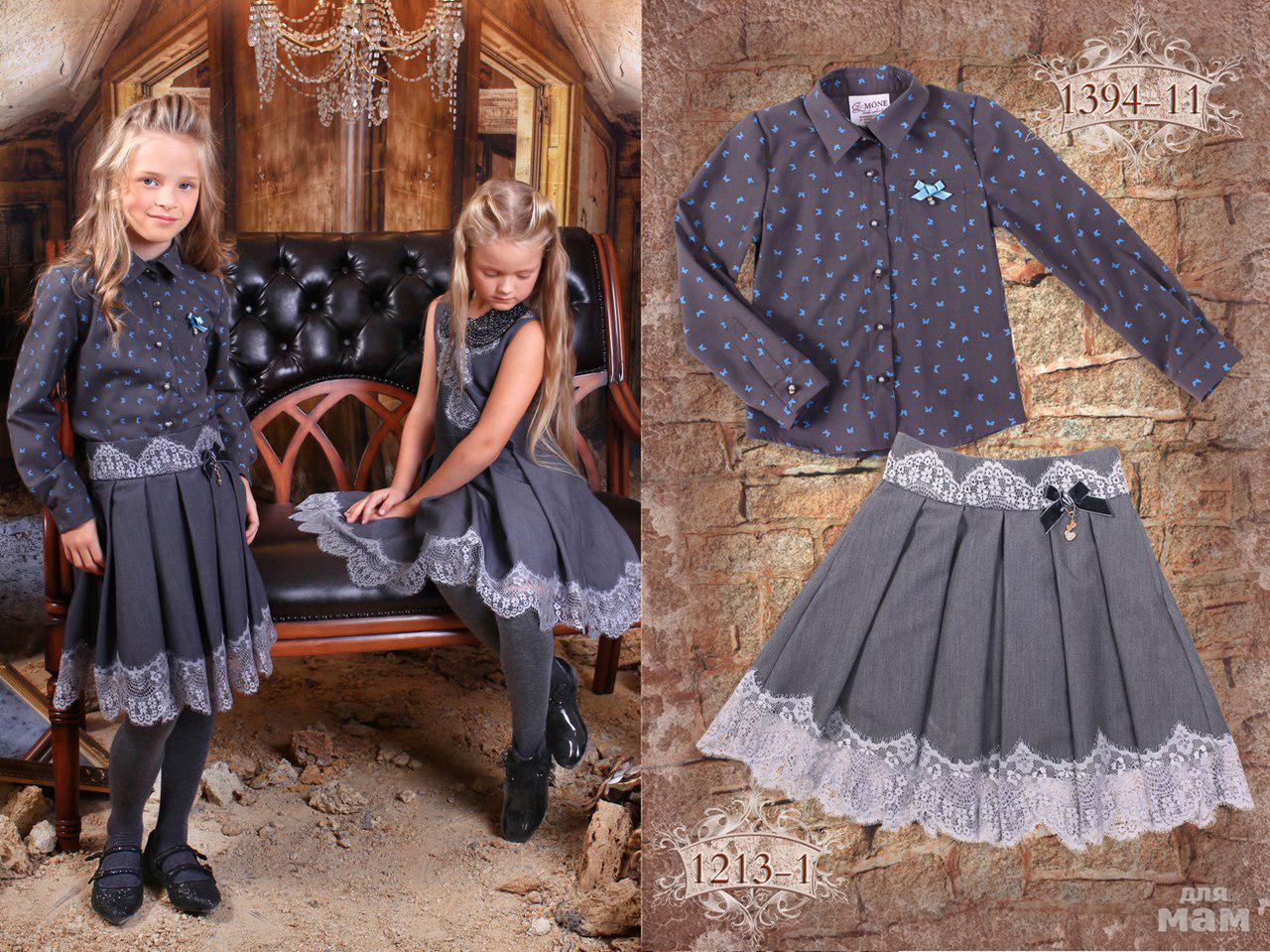 1213-1 юбка текстиль, однотон, французские кружева 122-152 чсерый, состав 50%вискоза 40%хлопок 10%лайкра цена 25,86+орг