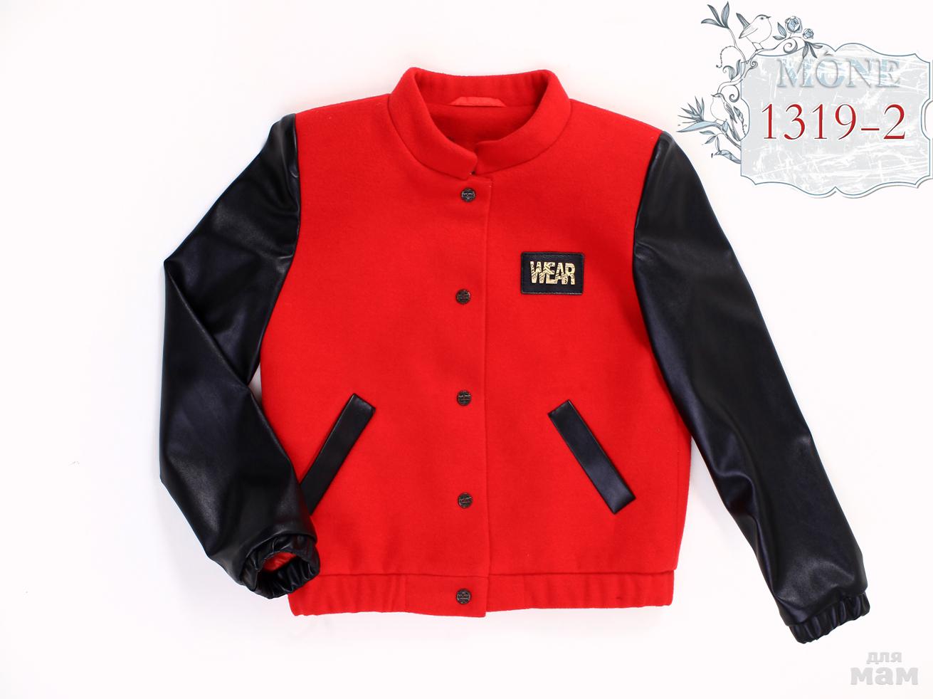 1319-2 курточка текстиль, кашемир, искусственная кожа 122-152 красный, состав 50% кашемир 50% шерсть, подклад 100% вискоза цена 36,34+орг