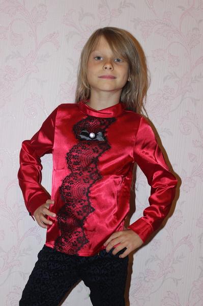 1065 блузка текстиль, атлас, французские кружева 122-152 красный, состав 60% хлопок 30% синтетика 10% лайкра цена 20,38+орг