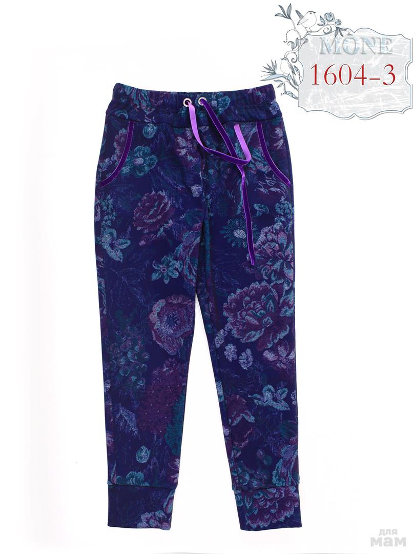 1604-3 брюки трикотаж, понтирома, принт розы фиолет 122-152 фиолетовый , состав 50%вискоза 40%полиэстер 10%лайкра цена 19,57+орг
