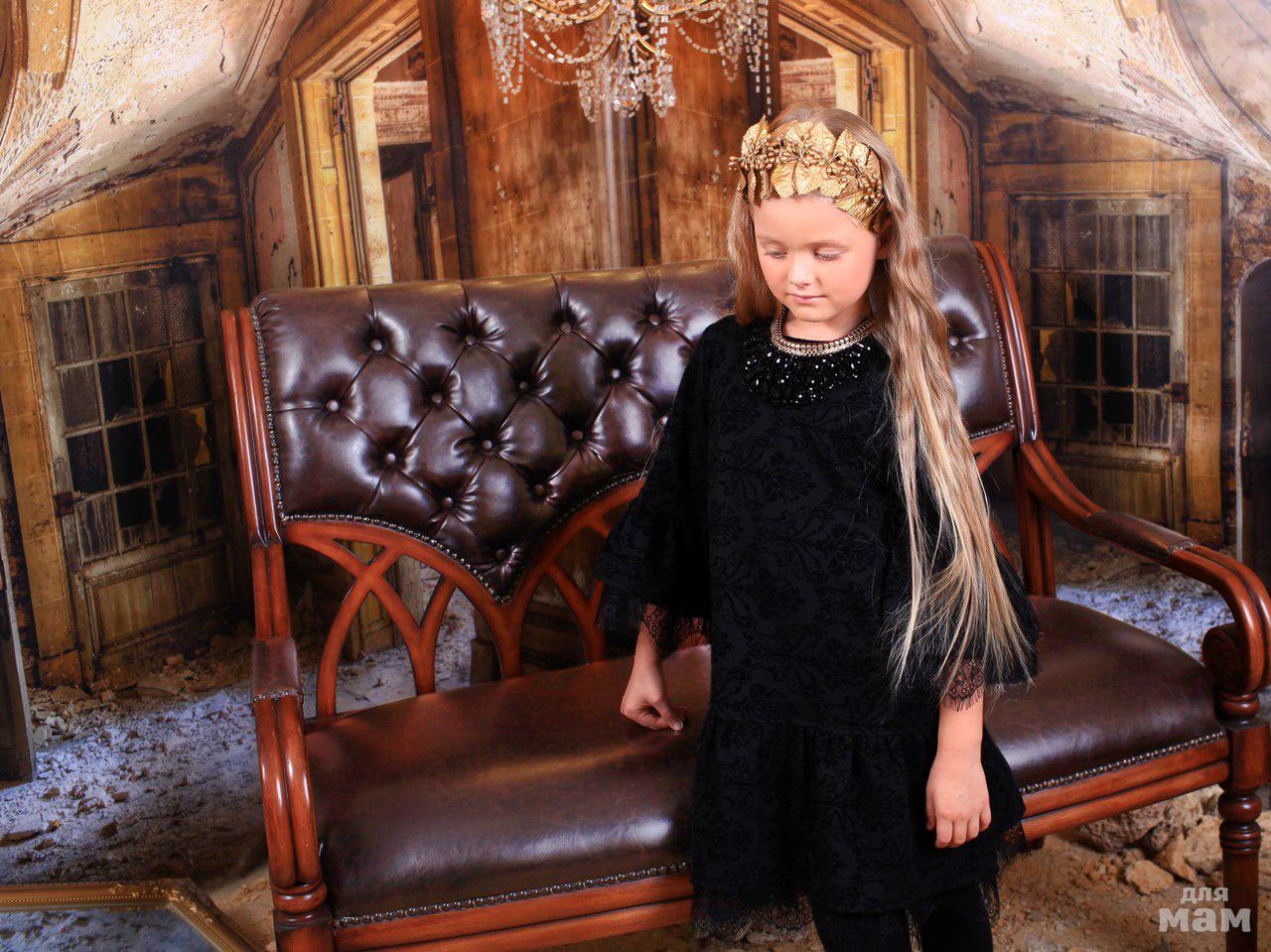 1619 платье трикотаж, рисунок флок, французские кружева 122-152 черный, состав 50%вискоза 40%полиэстер 10%лайкра цена 32,49+орг