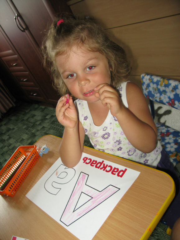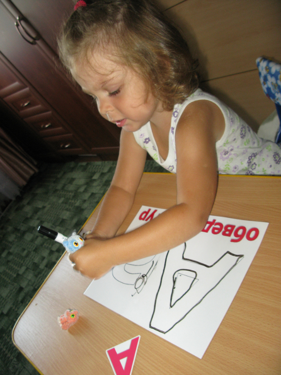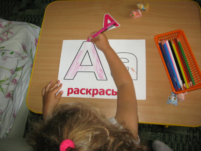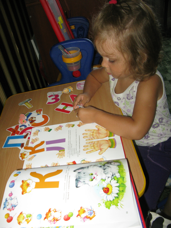 Дома с дочкойИногда мы играли в школу, сначала я ее учила буквам, потом дочка меня. Но как таковой задачи изучения алфавита не было.