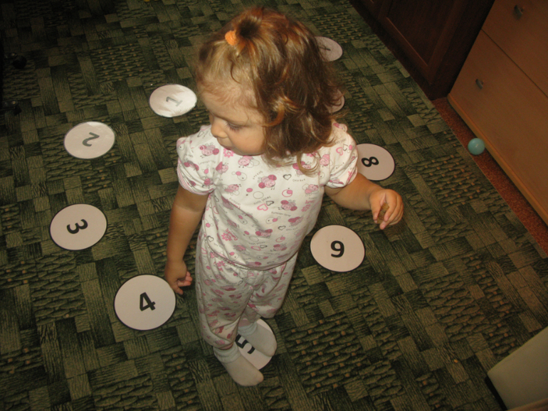 Разбросали по комнате наши числовые острова. прыгали по ним в числовом порядке, а диван это материк. И счет закрепили и наглядно острова представили.