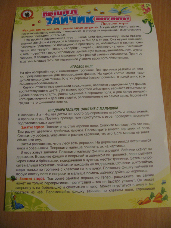 2. Настольная игра Вышел зайчик погулять