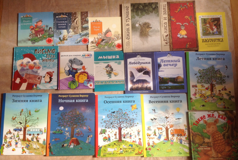 Книги Р.С. Бернер(у меня издания 2013 года, очень качественные на толстом картоне. Позже издательство, насколько я знаю, начало печатать книги на более тонком картоне) по 600