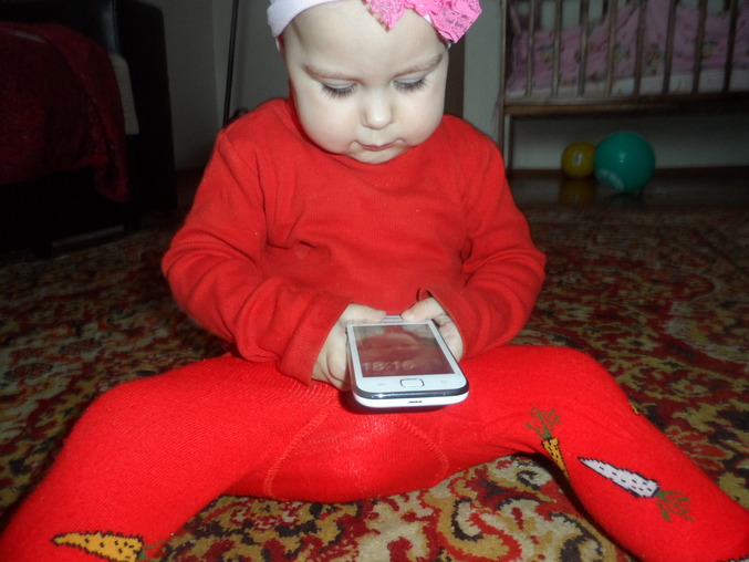 -любит играть в мячик,разбирать телефоны,звонить бабе, и при этом произносить аё(это алле))..