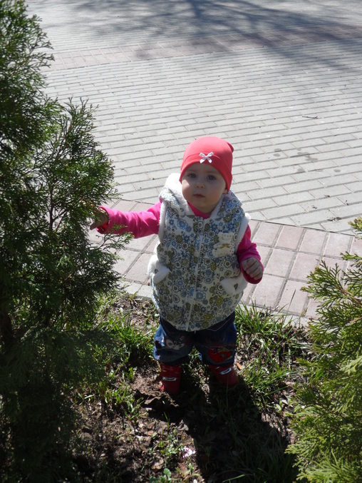 Вот и до нас дошла весна!Наконец-таки)Давно не писала про свою ягодку)Решилась всё-таки)Ангелинка оч активная,не успеваю за ней.В парке всегда бегает в противоположную сторону от меня-приходиться догонять)с умелками не торопимся,один хрен к 3 годам всех догоним)Вот с горшком проблемка-писает,когда посажу и то не всегда)если в колготки написала,то снимает сразу их)Короче,будем летом учиться проситься)Научилась бить кулачками-это,мол,папа на работе денежку зарабатывает,и ,воздушный поцелуй-это как с легкостью мама с гелей денежки тратит)Взрослая такая,блин,осознает многое уже)Тут гуляли с ней в парке,а на лавке девчонки сидят-подростки,одна девочка встала и позвала остальных в магазин,а моя услышала и за ними-в первых рядах шла!!!!С теплом на улице мы собираемся там "жить",а что дома делать?вот и фотки)