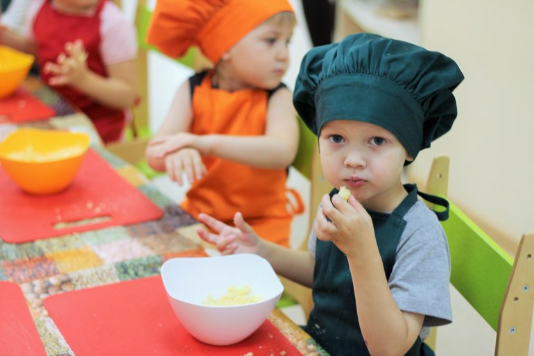 В саду развлекают как могут. Недавно одна ативная мамочка организовала в группе "школу юных поварят" (идея и все остальное взято из местного кафе). Детям понравилось переодеваться и возиться с мисочками. Это главное)