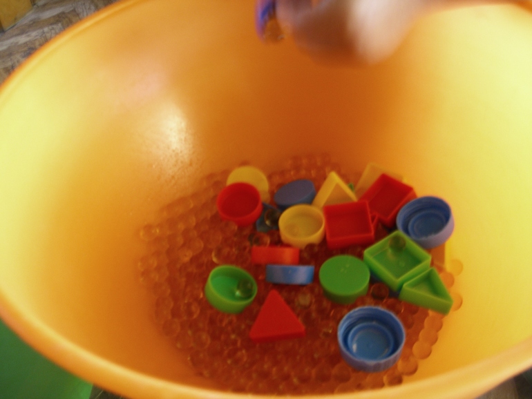 С коробочки с гидрогелевыми шариками выбирали фигурки