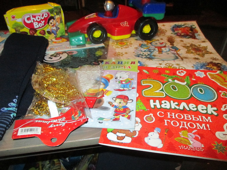 Сева очень ее ждал и был доволен всеми подарками только мы не знаем кто же это нам прислал))))Мы хотели прислать ответ!"!!!